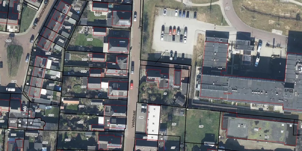 Het perceel waarop Veldstraat 11 staat heeft een oppervlakte van 805 m². Dit is een groot perceel. De perceeloppervlakte wordt geregistreerd door het Kadaster. Gedetailleerde informatie over de maten van dit perceel kunt u vinden in het rapport Kadastrale kaart met maatvoering van Veldstraat 11.