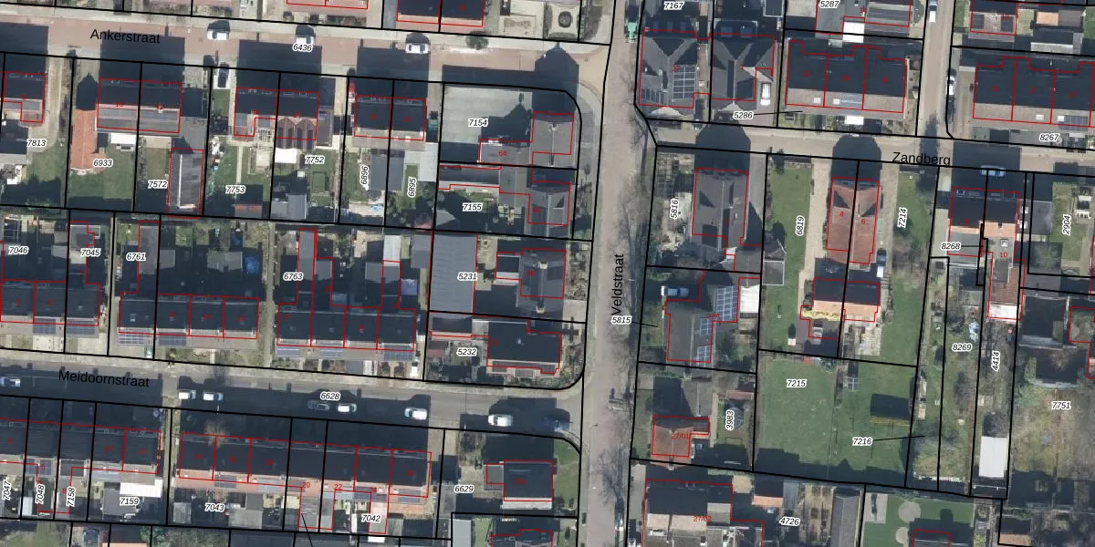 Gebruik de zoekbalk of klik op een perceel voor informatie over de adressen binnen dit perceel.
