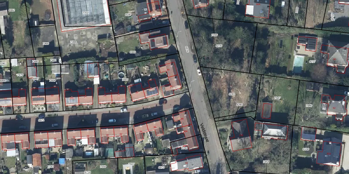 Het perceel waarop Veldstraat 86 staat heeft een oppervlakte van 1746 m². Dit is een zeer groot perceel. De perceeloppervlakte wordt geregistreerd door het Kadaster. Gedetailleerde informatie over de maten van dit perceel kunt u vinden in het rapport Kadastrale kaart met maatvoering van Veldstraat 86.