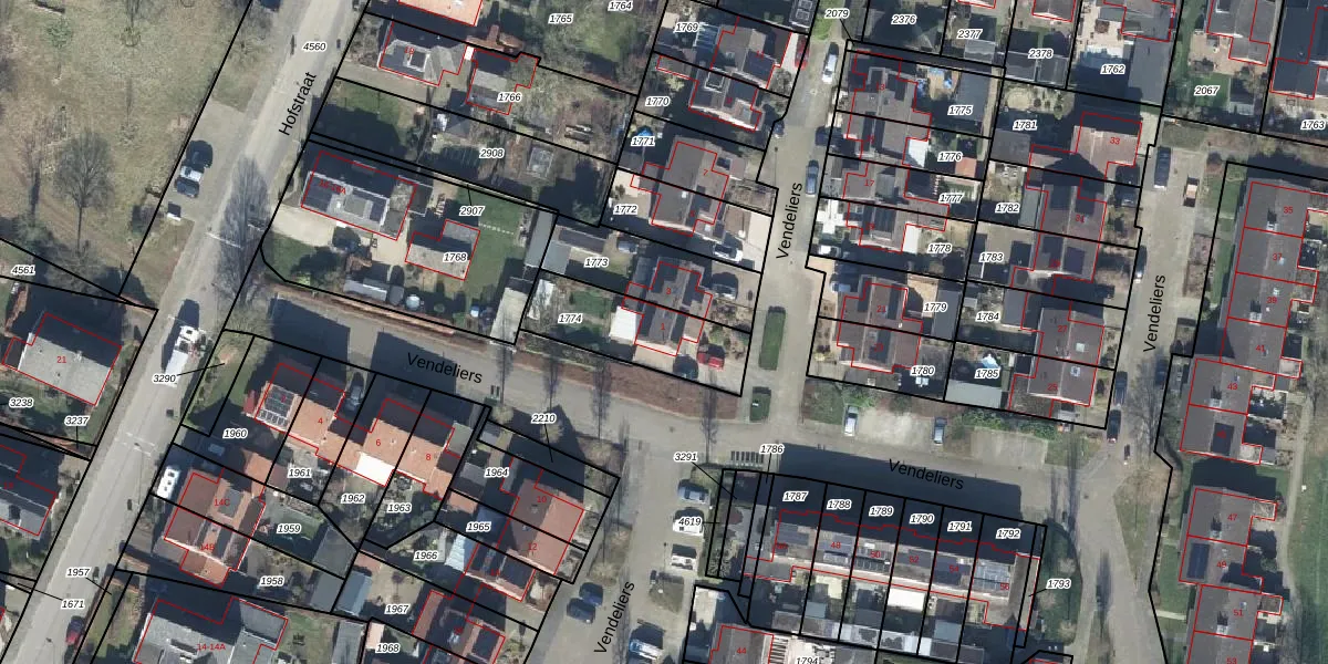 Het perceel waarop Vendeliers 1 staat heeft een oppervlakte van 320 m². Dit is een groot perceel. De perceeloppervlakte wordt geregistreerd door het Kadaster. Gedetailleerde informatie over de maten van dit perceel kunt u vinden in het rapport Kadastrale kaart met maatvoering van Vendeliers 1.