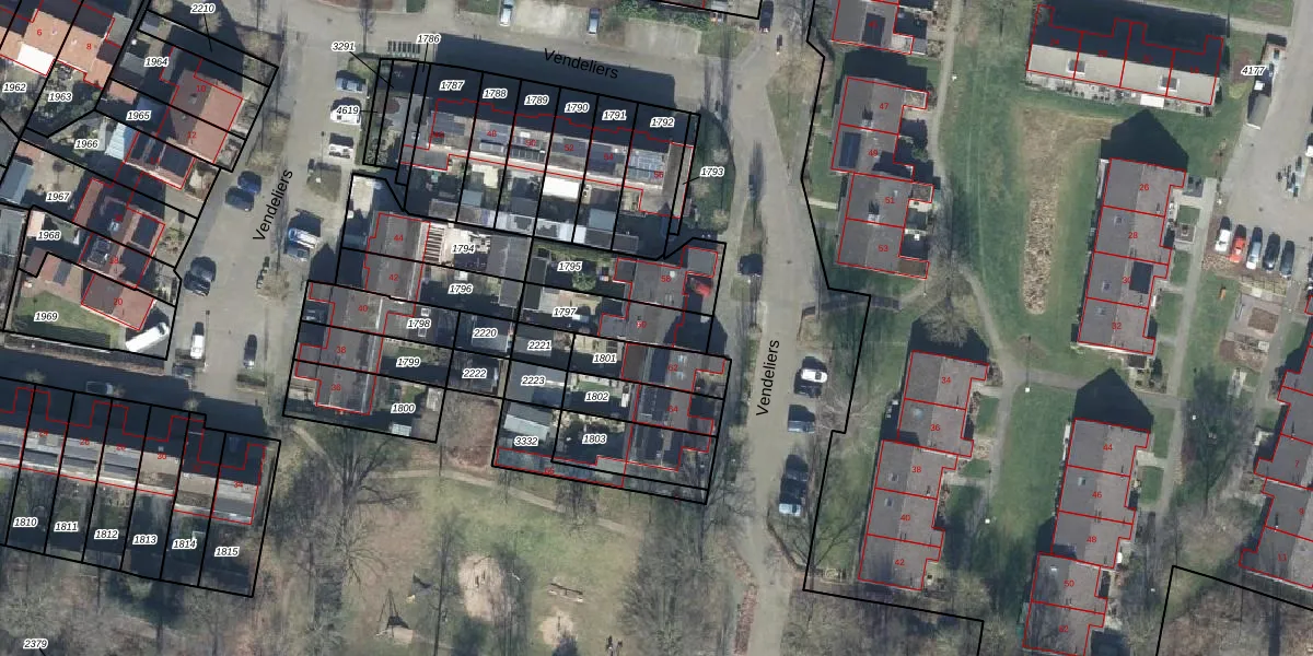 Het perceel waarop Vendeliers 60 staat heeft een oppervlakte van 176 m². Dit is een middelgroot perceel. De perceeloppervlakte wordt geregistreerd door het Kadaster. Gedetailleerde informatie over de maten van dit perceel kunt u vinden in het rapport Kadastrale kaart met maatvoering van Vendeliers 60.