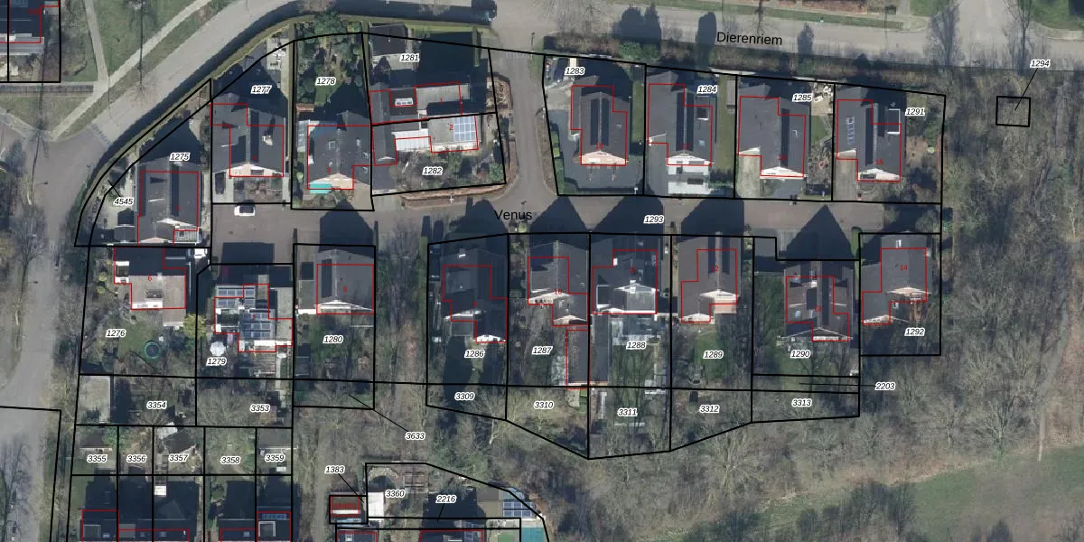 Het perceel waarop Venus 10 staat heeft een oppervlakte van 420 m². Dit is een groot perceel. De perceeloppervlakte wordt geregistreerd door het Kadaster. Gedetailleerde informatie over de maten van dit perceel kunt u vinden in het rapport Kadastrale kaart met maatvoering van Venus 10.