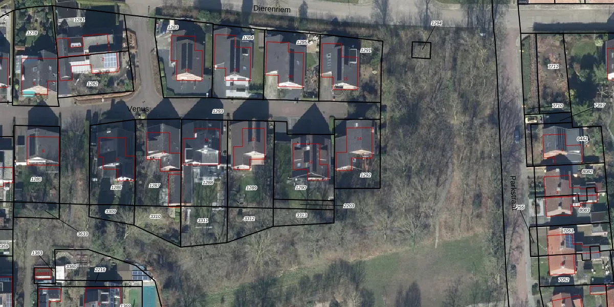 Het perceel waarop Venus 13 staat heeft een oppervlakte van 435 m². Dit is een groot perceel. De perceeloppervlakte wordt geregistreerd door het Kadaster. Gedetailleerde informatie over de maten van dit perceel kunt u vinden in het rapport Kadastrale kaart met maatvoering van Venus 13.