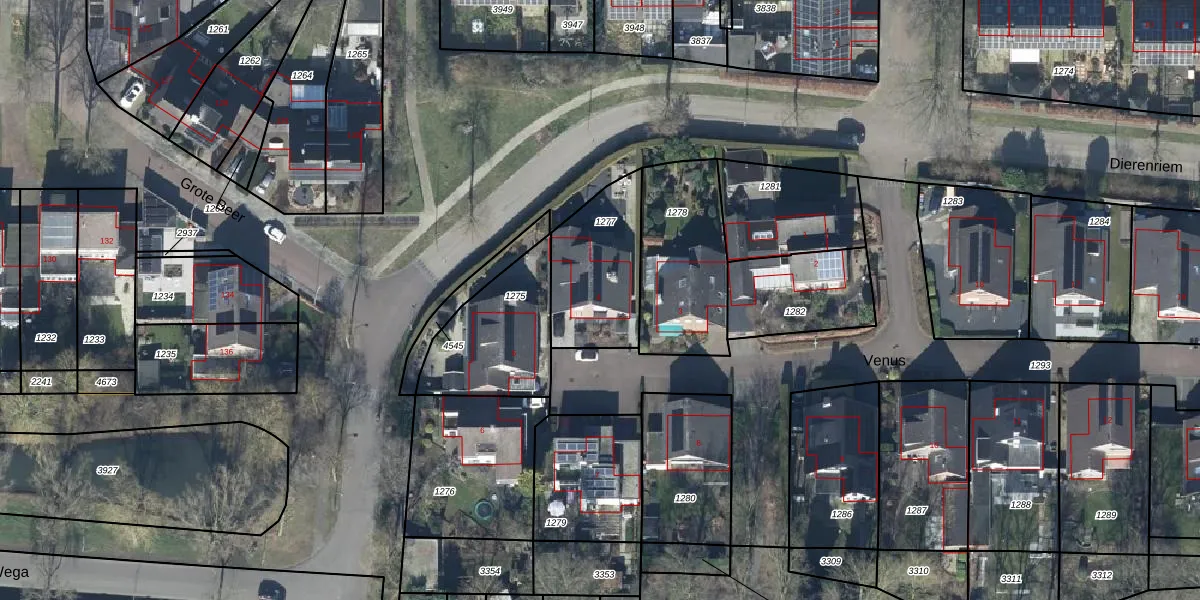 Het perceel waarop Venus 4 staat heeft een oppervlakte van 380 m². Dit is een groot perceel. De perceeloppervlakte wordt geregistreerd door het Kadaster. Gedetailleerde informatie over de maten van dit perceel kunt u vinden in het rapport Kadastrale kaart met maatvoering van Venus 4.