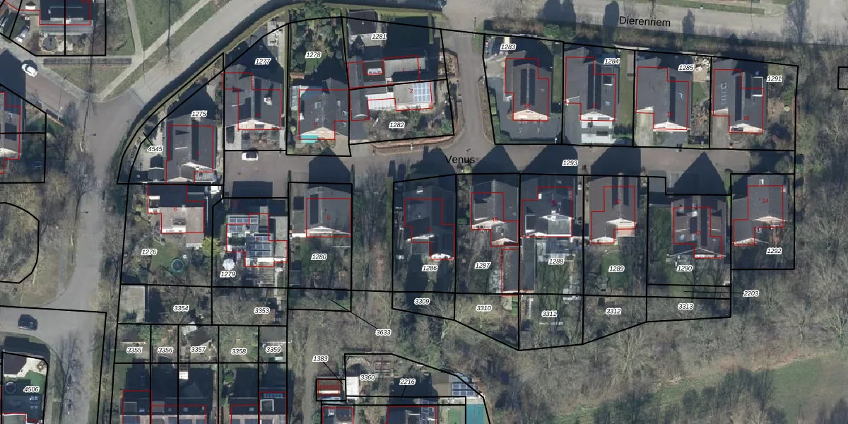 Het perceel waarop Venus 9 staat heeft een oppervlakte van 400 m². Dit is een groot perceel. De perceeloppervlakte wordt geregistreerd door het Kadaster. Gedetailleerde informatie over de maten van dit perceel kunt u vinden in het rapport Kadastrale kaart met maatvoering van Venus 9.
