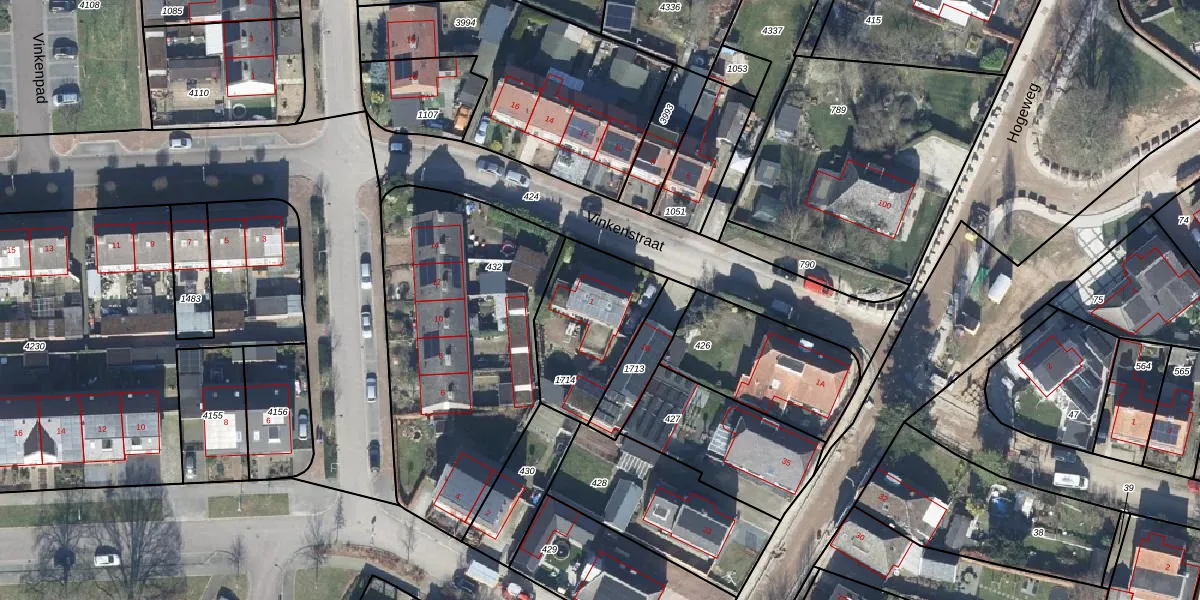 Het perceel waarop Vinkenstraat 1 staat heeft een oppervlakte van 425 m². Dit is een groot perceel. De perceeloppervlakte wordt geregistreerd door het Kadaster. Gedetailleerde informatie over de maten van dit perceel kunt u vinden in het rapport Kadastrale kaart met maatvoering van Vinkenstraat 1.