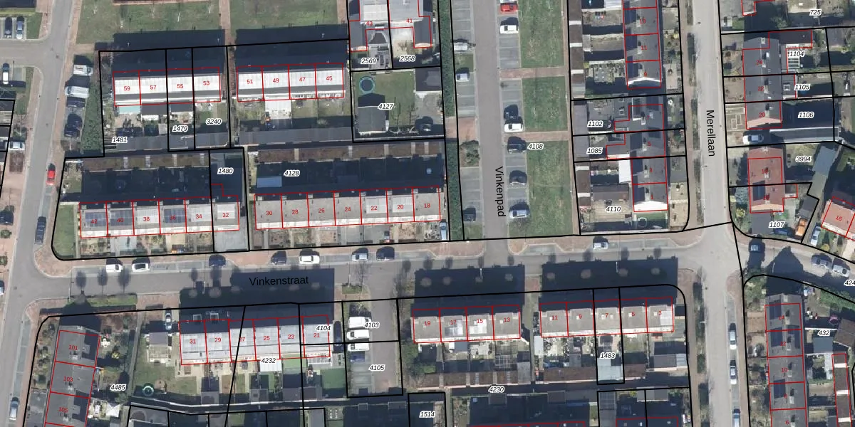 Het perceel waarop Vinkenstraat 18 staat heeft een oppervlakte van 1822 m². Dit is een zeer groot perceel. De perceeloppervlakte wordt geregistreerd door het Kadaster. Gedetailleerde informatie over de maten van dit perceel kunt u vinden in het rapport Kadastrale kaart met maatvoering van Vinkenstraat 18.