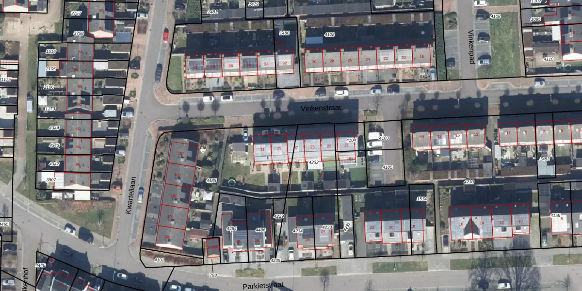 Het perceel waarop Vinkenstraat 27 staat heeft een oppervlakte van 1568 m². Dit is een zeer groot perceel. De perceeloppervlakte wordt geregistreerd door het Kadaster. Gedetailleerde informatie over de maten van dit perceel kunt u vinden in het rapport Kadastrale kaart met maatvoering van Vinkenstraat 27.