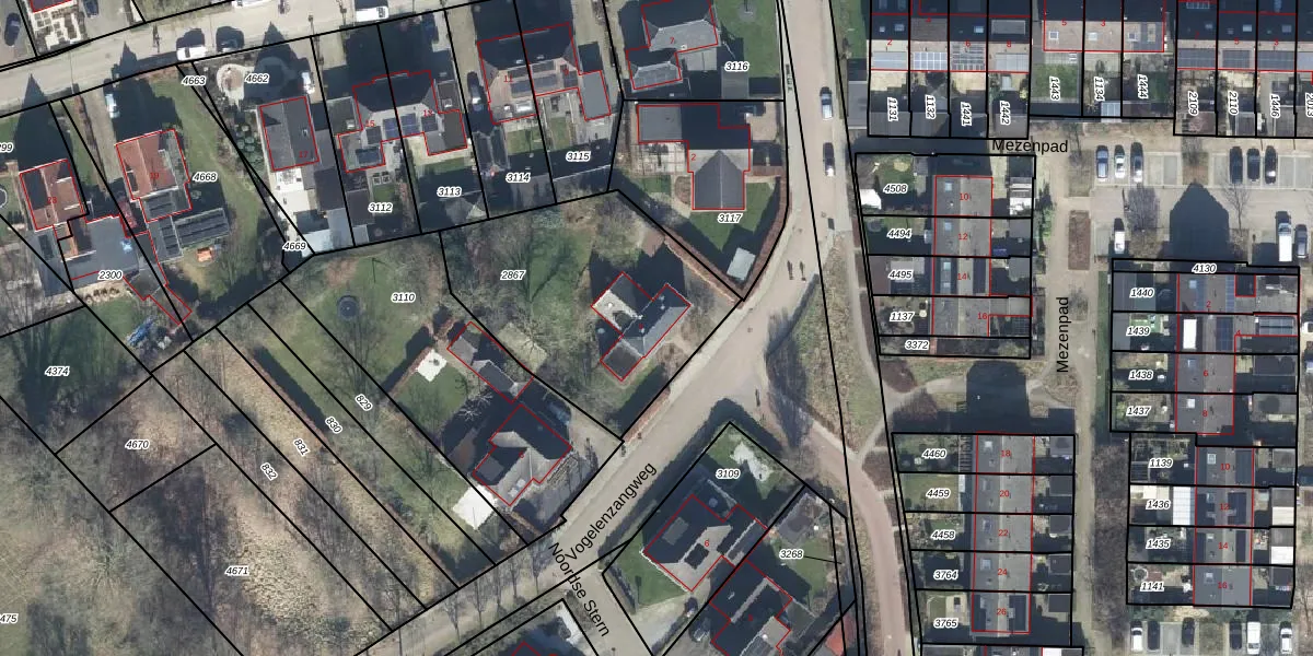 Het perceel waarop Vogelenzangweg 4 staat heeft een oppervlakte van 1015 m². Dit is een zeer groot perceel. De perceeloppervlakte wordt geregistreerd door het Kadaster. Gedetailleerde informatie over de maten van dit perceel kunt u vinden in het rapport Kadastrale kaart met maatvoering van Vogelenzangweg 4.