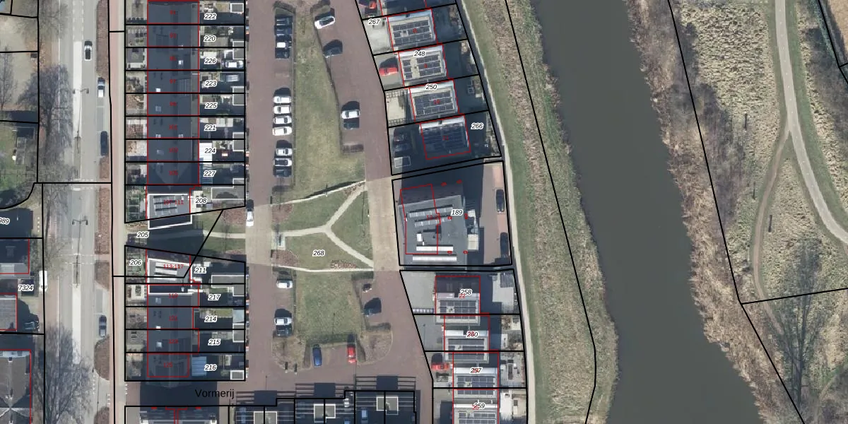 Het perceel waarop Vormerij 16 staat heeft een oppervlakte van 596 m². Dit is een groot perceel. De perceeloppervlakte wordt geregistreerd door het Kadaster. Gedetailleerde informatie over de maten van dit perceel kunt u vinden in het rapport Kadastrale kaart met maatvoering van Vormerij 16.