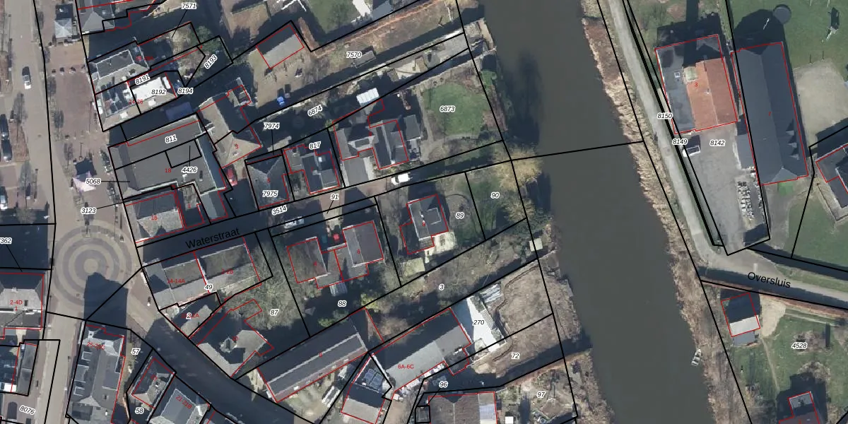 Het perceel waarop Waterstraat 8 staat heeft een oppervlakte van 435 m². Dit is een groot perceel. De perceeloppervlakte wordt geregistreerd door het Kadaster. Gedetailleerde informatie over de maten van dit perceel kunt u vinden in het rapport Kadastrale kaart met maatvoering van Waterstraat 8.