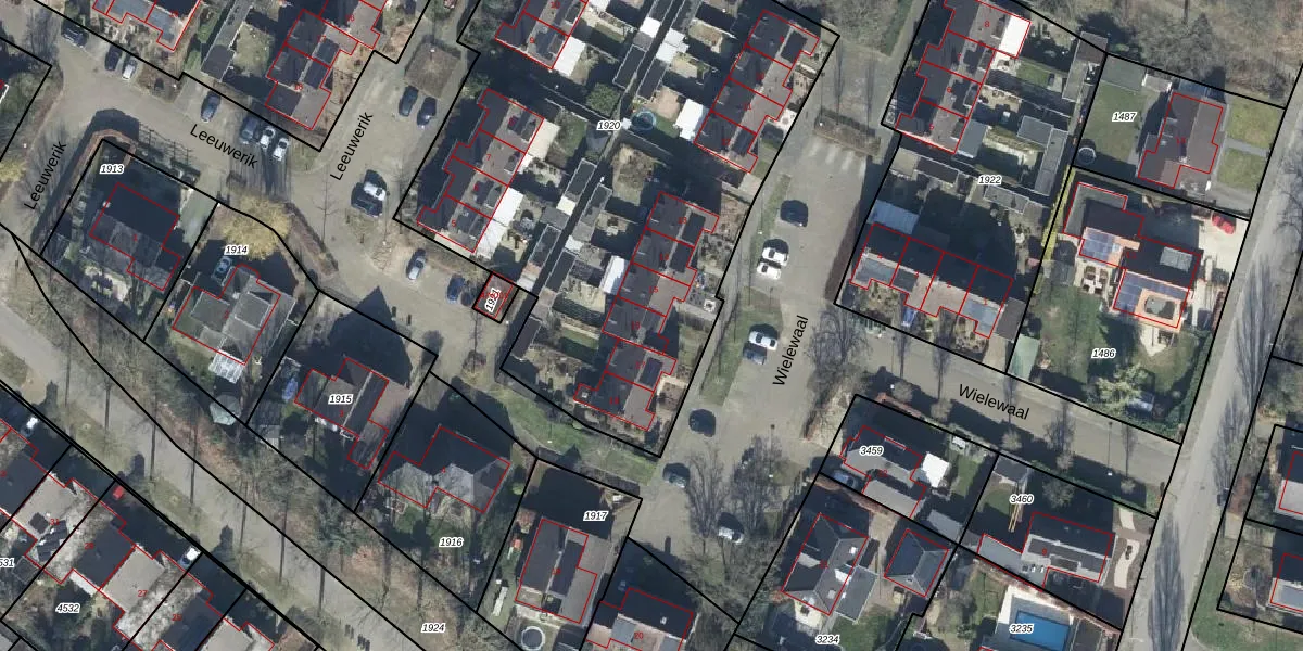 Het perceel waarop Wielewaal 16 staat heeft een oppervlakte van 3245 m². Dit is een zeer groot perceel. De perceeloppervlakte wordt geregistreerd door het Kadaster. Gedetailleerde informatie over de maten van dit perceel kunt u vinden in het rapport Kadastrale kaart met maatvoering van Wielewaal 16.