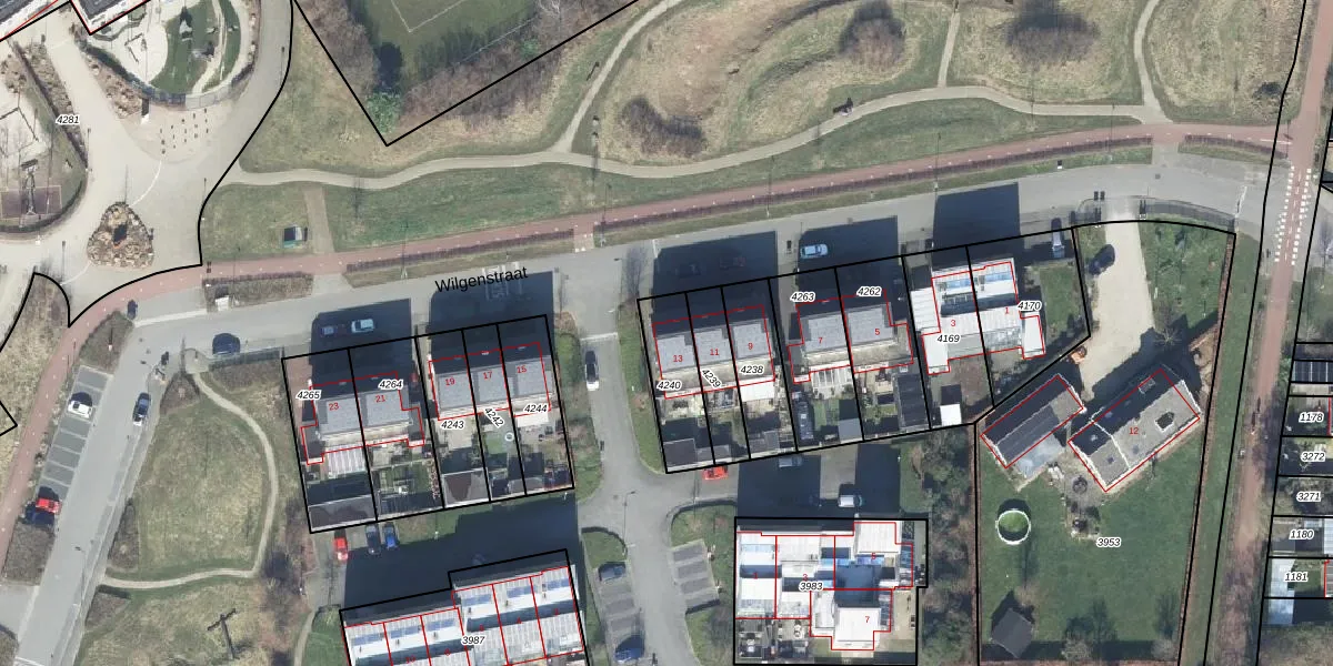 Wilgenstraat 13 is gelegen op kadastraal perceel GDG00L4240. Deze kadastrale aanduiding is uniek en wordt gebruikt door het Kadaster om eigendomsrechten en andere zakelijke rechten vast te leggen. Het perceel maakt onderdeel uit van de kadastrale gemeente Gendringen.