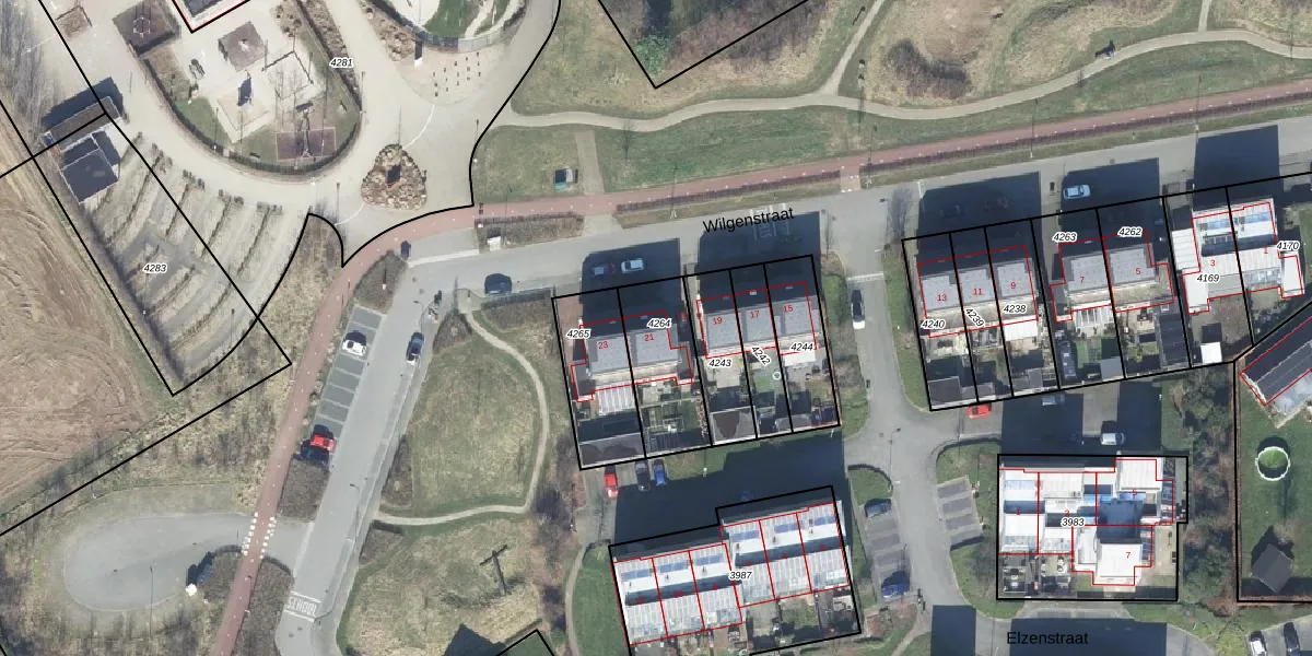 Wilgenstraat 21 is gelegen op kadastraal perceel GDG00L4264. Deze kadastrale aanduiding is uniek en wordt gebruikt door het Kadaster om eigendomsrechten en andere zakelijke rechten vast te leggen. Het perceel maakt onderdeel uit van de kadastrale gemeente Gendringen.