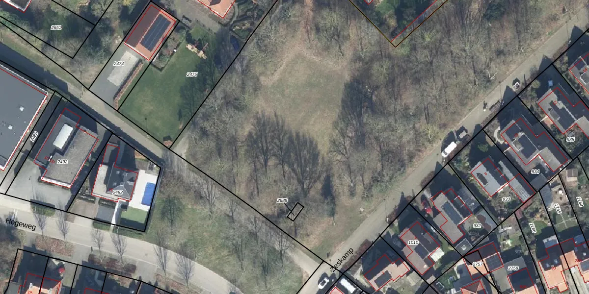 Het perceel waarop Zeskamp 13 staat heeft een oppervlakte van 1,7 ha. Dit is een zeer groot perceel. De perceeloppervlakte wordt geregistreerd door het Kadaster. Gedetailleerde informatie over de maten van dit perceel kunt u vinden in het rapport Kadastrale kaart met maatvoering van Zeskamp 13.