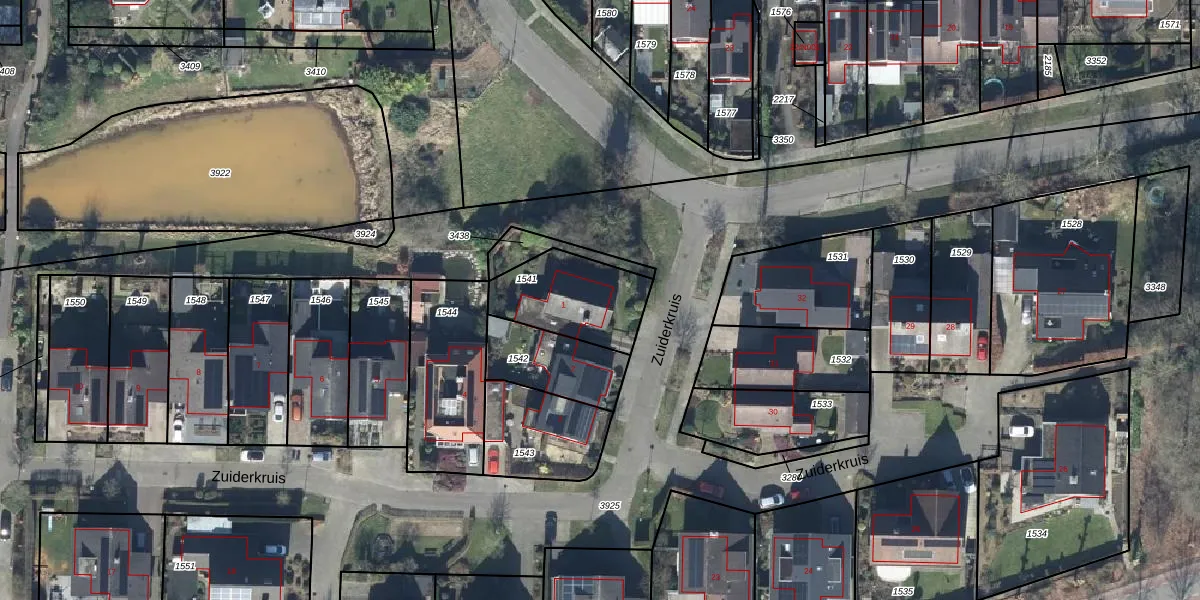 Het perceel waarop Zuiderkruis 1 staat heeft een oppervlakte van 305 m². Dit is een groot perceel. De perceeloppervlakte wordt geregistreerd door het Kadaster. Gedetailleerde informatie over de maten van dit perceel kunt u vinden in het rapport Kadastrale kaart met maatvoering van Zuiderkruis 1.