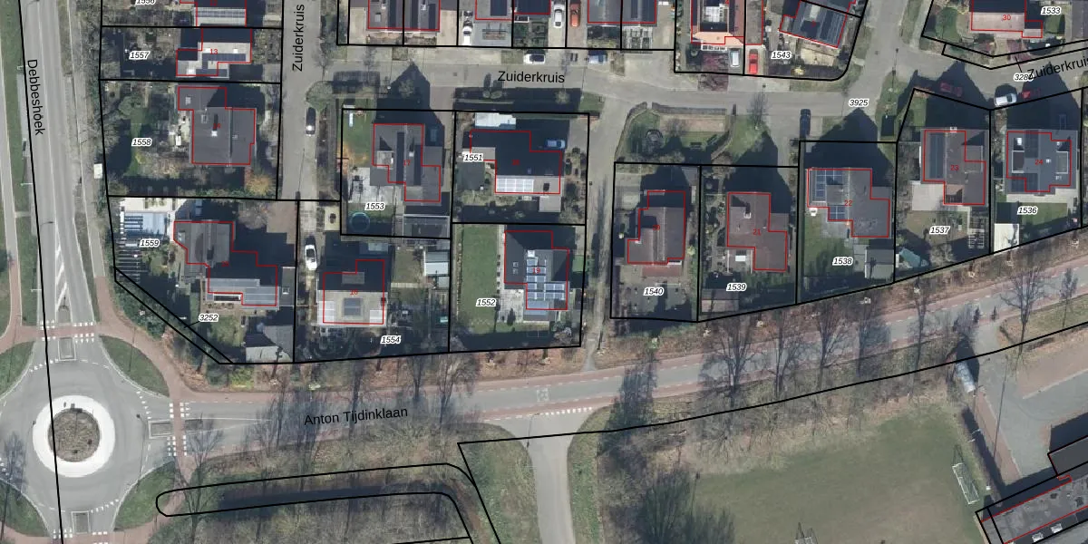 Het perceel waarop Zuiderkruis 19 staat heeft een oppervlakte van 554 m². Dit is een groot perceel. De perceeloppervlakte wordt geregistreerd door het Kadaster. Gedetailleerde informatie over de maten van dit perceel kunt u vinden in het rapport Kadastrale kaart met maatvoering van Zuiderkruis 19.