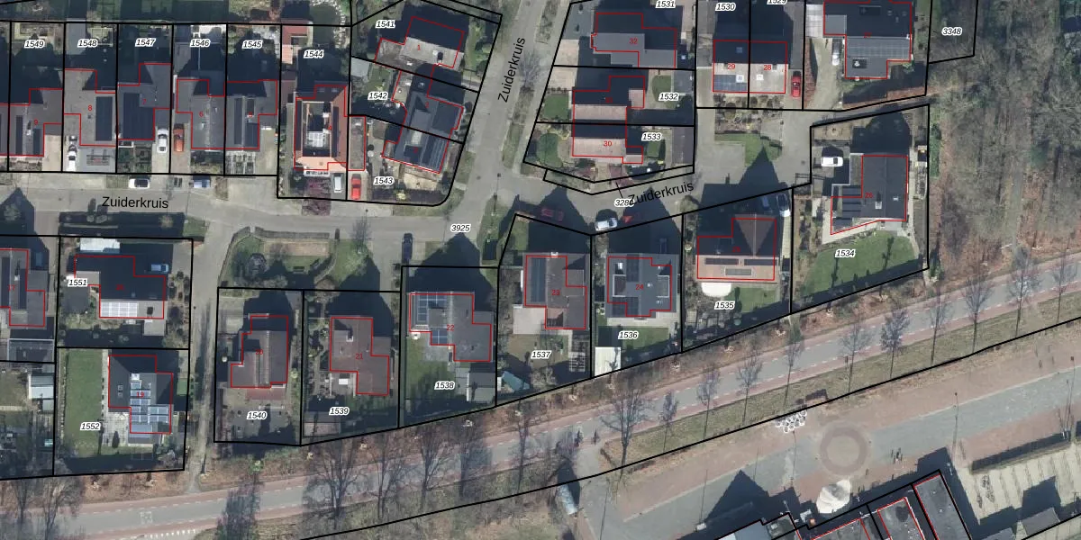 Gebruik de zoekbalk of klik op een perceel voor informatie over de adressen binnen dit perceel.