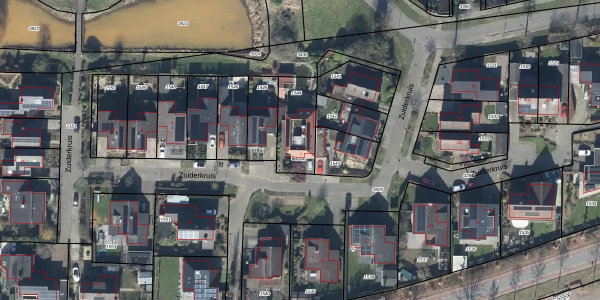 Het perceel waarop Zuiderkruis 4 staat heeft een oppervlakte van 417 m². Dit is een groot perceel. De perceeloppervlakte wordt geregistreerd door het Kadaster. Gedetailleerde informatie over de maten van dit perceel kunt u vinden in het rapport Kadastrale kaart met maatvoering van Zuiderkruis 4.