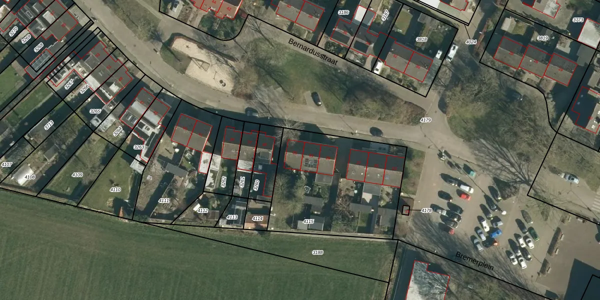 Bernardusstraat 33 is gelegen op kadastraal perceel BLE01A4115. Deze kadastrale aanduiding is uniek en wordt gebruikt door het Kadaster om eigendomsrechten en andere zakelijke rechten vast te leggen. Het perceel maakt onderdeel uit van de kadastrale gemeente Baarle-Nassau.