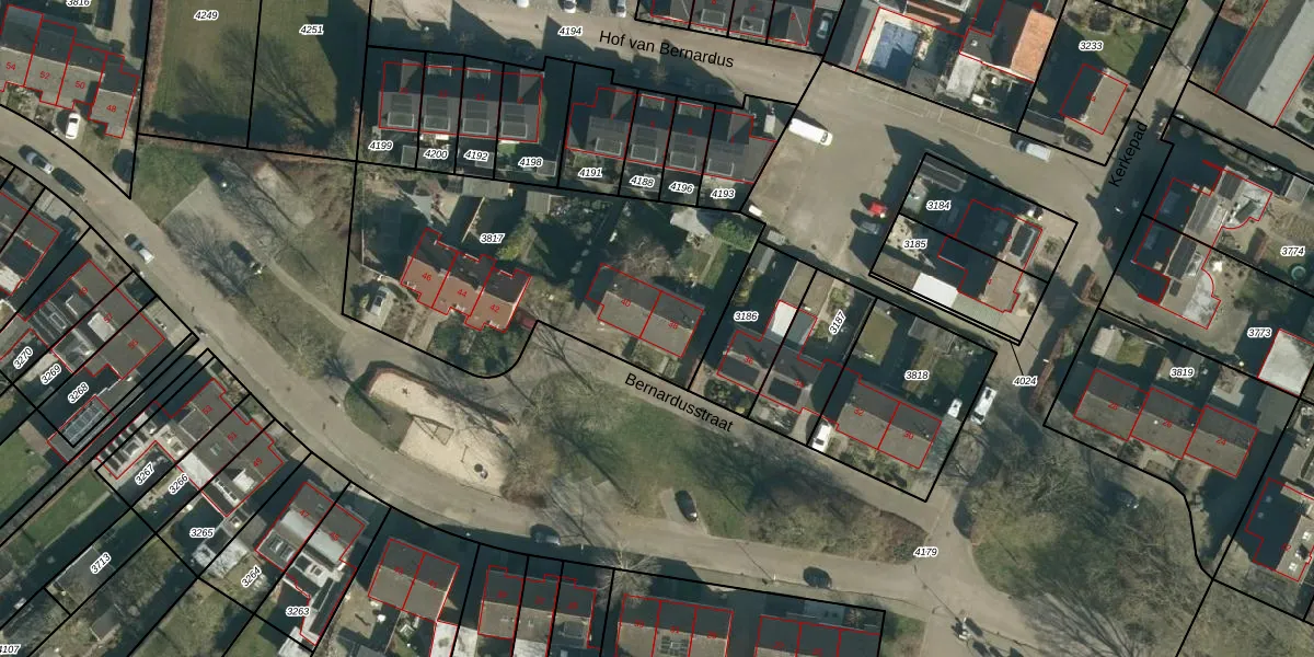 Bernardusstraat 38 is gelegen op kadastraal perceel BLE01A3817. Deze kadastrale aanduiding is uniek en wordt gebruikt door het Kadaster om eigendomsrechten en andere zakelijke rechten vast te leggen. Het perceel maakt onderdeel uit van de kadastrale gemeente Baarle-Nassau.