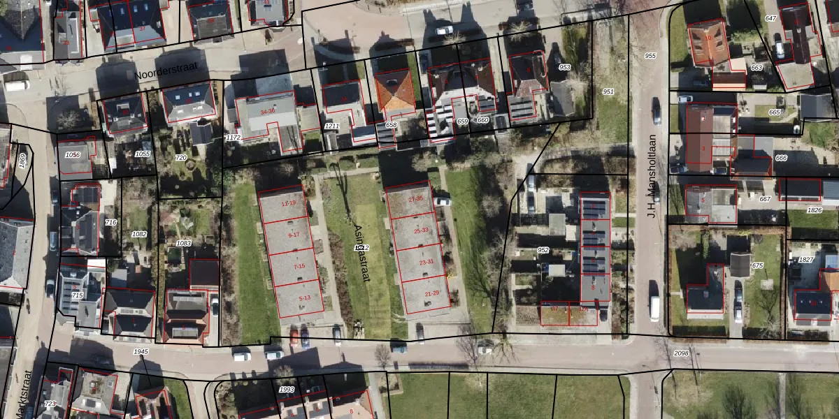 Het perceel waarop Asingastraat 27 staat heeft een oppervlakte van 3215 m². Dit is een zeer groot perceel. De perceeloppervlakte wordt geregistreerd door het Kadaster. Gedetailleerde informatie over de maten van dit perceel kunt u vinden in het rapport Kadastrale kaart met maatvoering van Asingastraat 27.