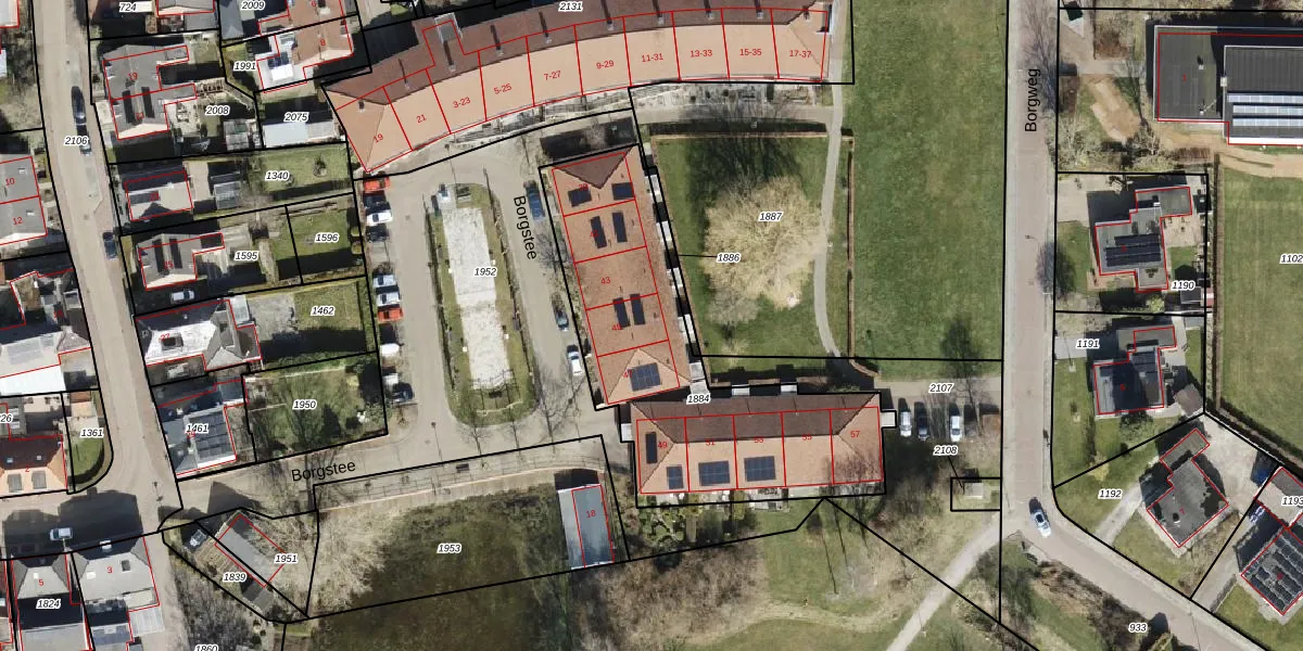 Het perceel waarop Borgstee 45 staat heeft een oppervlakte van 1293 m². Dit is een zeer groot perceel. De perceeloppervlakte wordt geregistreerd door het Kadaster. Gedetailleerde informatie over de maten van dit perceel kunt u vinden in het rapport Kadastrale kaart met maatvoering van Borgstee 45.