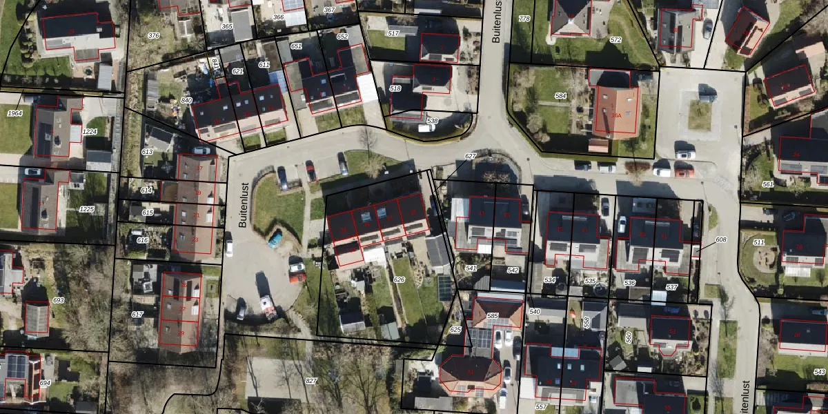 Het perceel waarop Buitenlust 39 staat heeft een oppervlakte van 1130 m². Dit is een zeer groot perceel. De perceeloppervlakte wordt geregistreerd door het Kadaster. Gedetailleerde informatie over de maten van dit perceel kunt u vinden in het rapport Kadastrale kaart met maatvoering van Buitenlust 39.