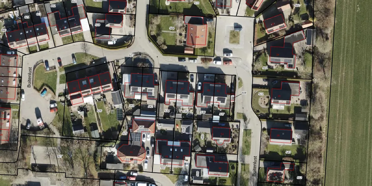 Het perceel waarop Buitenlust 47 staat heeft een oppervlakte van 249 m². Dit is een middelgroot perceel. De perceeloppervlakte wordt geregistreerd door het Kadaster. Gedetailleerde informatie over de maten van dit perceel kunt u vinden in het rapport Kadastrale kaart met maatvoering van Buitenlust 47.