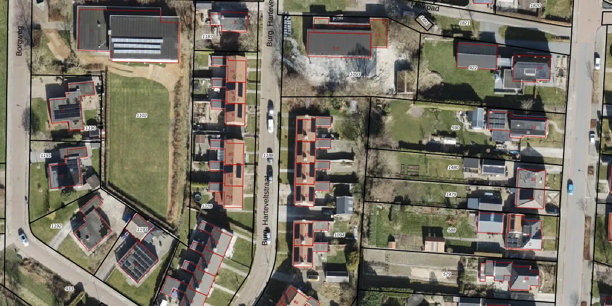 Burg. Harteveltstraat 9 is gelegen op kadastraal perceel URM00D1094. Deze kadastrale aanduiding is uniek en wordt gebruikt door het Kadaster om eigendomsrechten en andere zakelijke rechten vast te leggen. Het perceel maakt onderdeel uit van de kadastrale gemeente Ulrum.