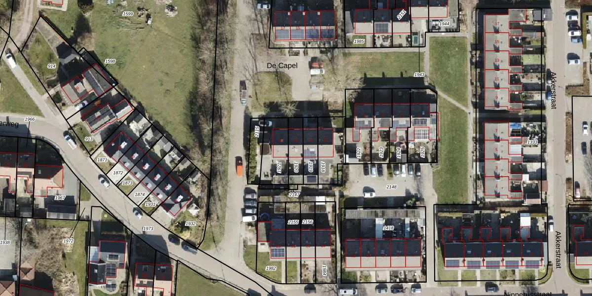 Het perceel waarop De Capel 14 staat heeft een oppervlakte van 112 m². Dit is een middelgroot perceel. De perceeloppervlakte wordt geregistreerd door het Kadaster. Gedetailleerde informatie over de maten van dit perceel kunt u vinden in het rapport Kadastrale kaart met maatvoering van De Capel 14.