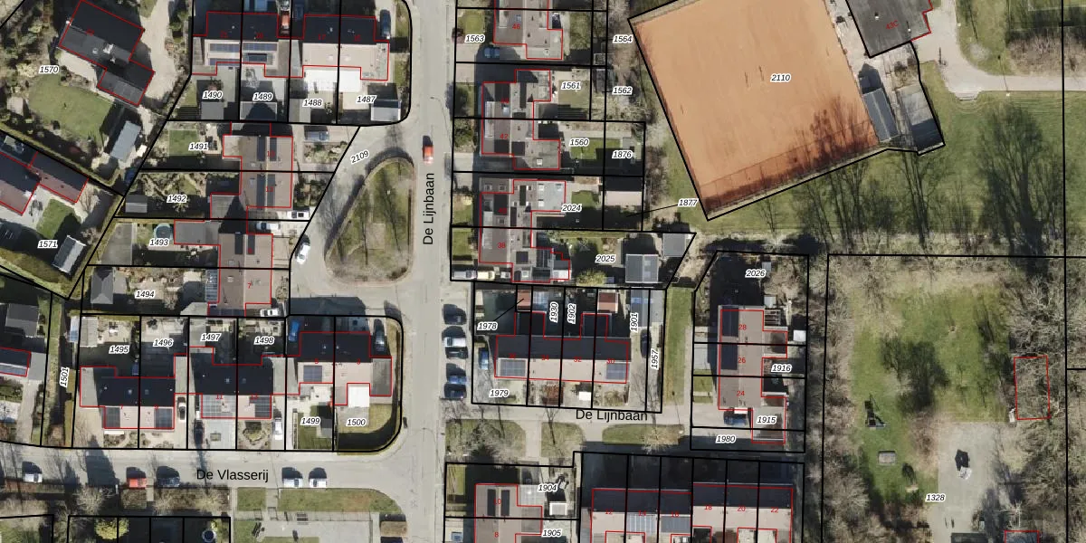Het perceel waarop De Lijnbaan 38 staat heeft een oppervlakte van 432 m². Dit is een groot perceel. De perceeloppervlakte wordt geregistreerd door het Kadaster. Gedetailleerde informatie over de maten van dit perceel kunt u vinden in het rapport Kadastrale kaart met maatvoering van De Lijnbaan 38.