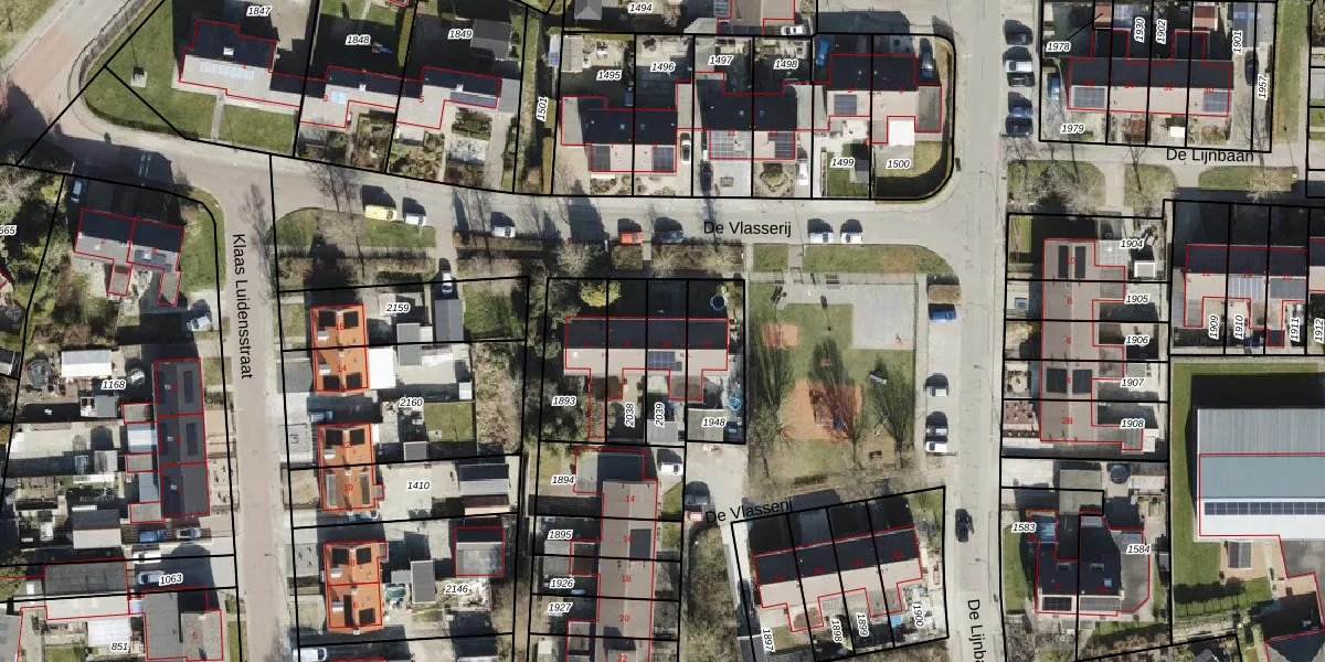 Het perceel waarop De Vlasserij 10 staat heeft een oppervlakte van 151 m². Dit is een middelgroot perceel. De perceeloppervlakte wordt geregistreerd door het Kadaster. Gedetailleerde informatie over de maten van dit perceel kunt u vinden in het rapport Kadastrale kaart met maatvoering van De Vlasserij 10.