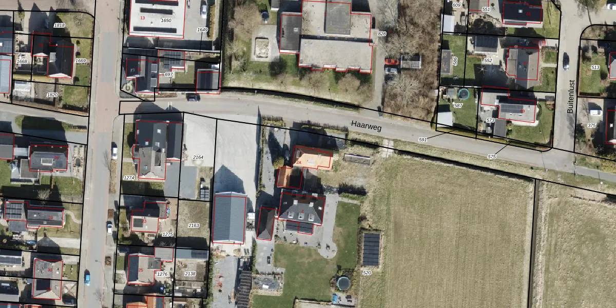 Het perceel waarop Haarweg 2-A staat heeft een oppervlakte van 9855 m². Dit is een zeer groot perceel. De perceeloppervlakte wordt geregistreerd door het Kadaster. Gedetailleerde informatie over de maten van dit perceel kunt u vinden in het rapport Kadastrale kaart met maatvoering van Haarweg 2-A.