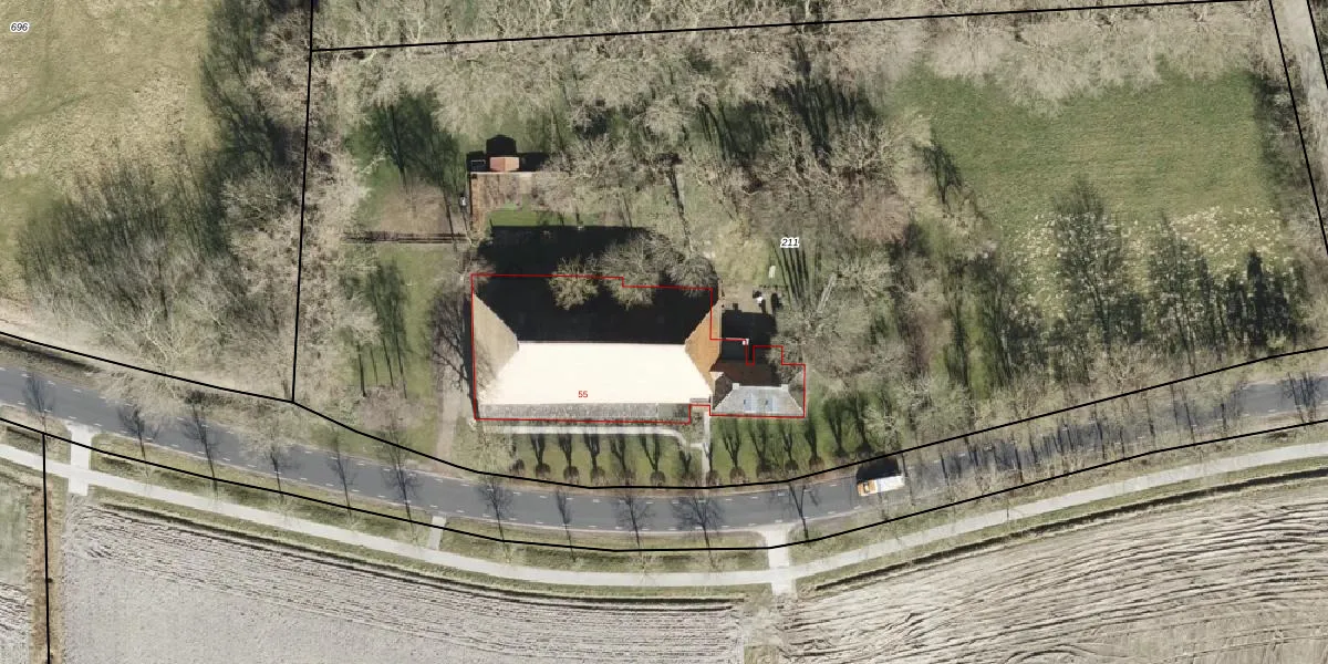 Het perceel waarop Leensterweg 55 staat heeft een oppervlakte van 9540 m². Dit is een zeer groot perceel. De perceeloppervlakte wordt geregistreerd door het Kadaster. Gedetailleerde informatie over de maten van dit perceel kunt u vinden in het rapport Kadastrale kaart met maatvoering van Leensterweg 55.