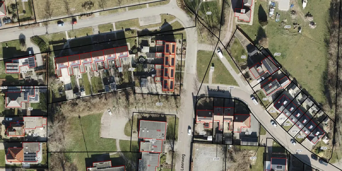 Het perceel waarop Leerweg 48 staat heeft een oppervlakte van 2454 m². Dit is een zeer groot perceel. De perceeloppervlakte wordt geregistreerd door het Kadaster. Gedetailleerde informatie over de maten van dit perceel kunt u vinden in het rapport Kadastrale kaart met maatvoering van Leerweg 48.