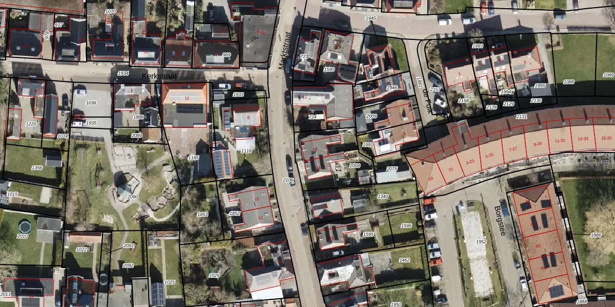 Het perceel waarop Marktstraat 19 staat heeft een oppervlakte van 437 m². Dit is een groot perceel. De perceeloppervlakte wordt geregistreerd door het Kadaster. Gedetailleerde informatie over de maten van dit perceel kunt u vinden in het rapport Kadastrale kaart met maatvoering van Marktstraat 19.
