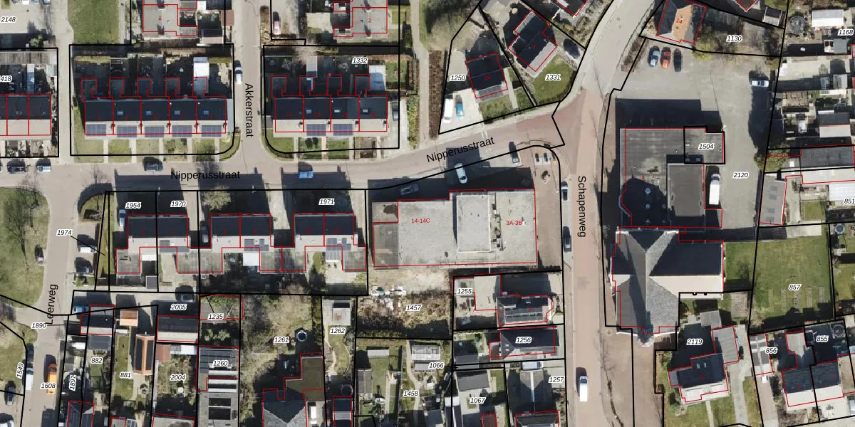 Het perceel waarop Nipperusstraat 14-B staat heeft een oppervlakte van 1457 m². Dit is een zeer groot perceel. De perceeloppervlakte wordt geregistreerd door het Kadaster. Gedetailleerde informatie over de maten van dit perceel kunt u vinden in het rapport Kadastrale kaart met maatvoering van Nipperusstraat 14-B.