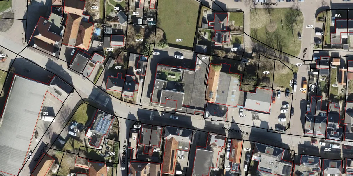 Het perceel waarop Noorderstraat 11-A staat heeft een oppervlakte van 1945 m². Dit is een zeer groot perceel. De perceeloppervlakte wordt geregistreerd door het Kadaster. Gedetailleerde informatie over de maten van dit perceel kunt u vinden in het rapport Kadastrale kaart met maatvoering van Noorderstraat 11-A.