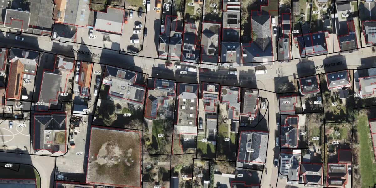 Het perceel waarop Noorderstraat 20 staat heeft een oppervlakte van 470 m². Dit is een groot perceel. De perceeloppervlakte wordt geregistreerd door het Kadaster. Gedetailleerde informatie over de maten van dit perceel kunt u vinden in het rapport Kadastrale kaart met maatvoering van Noorderstraat 20.