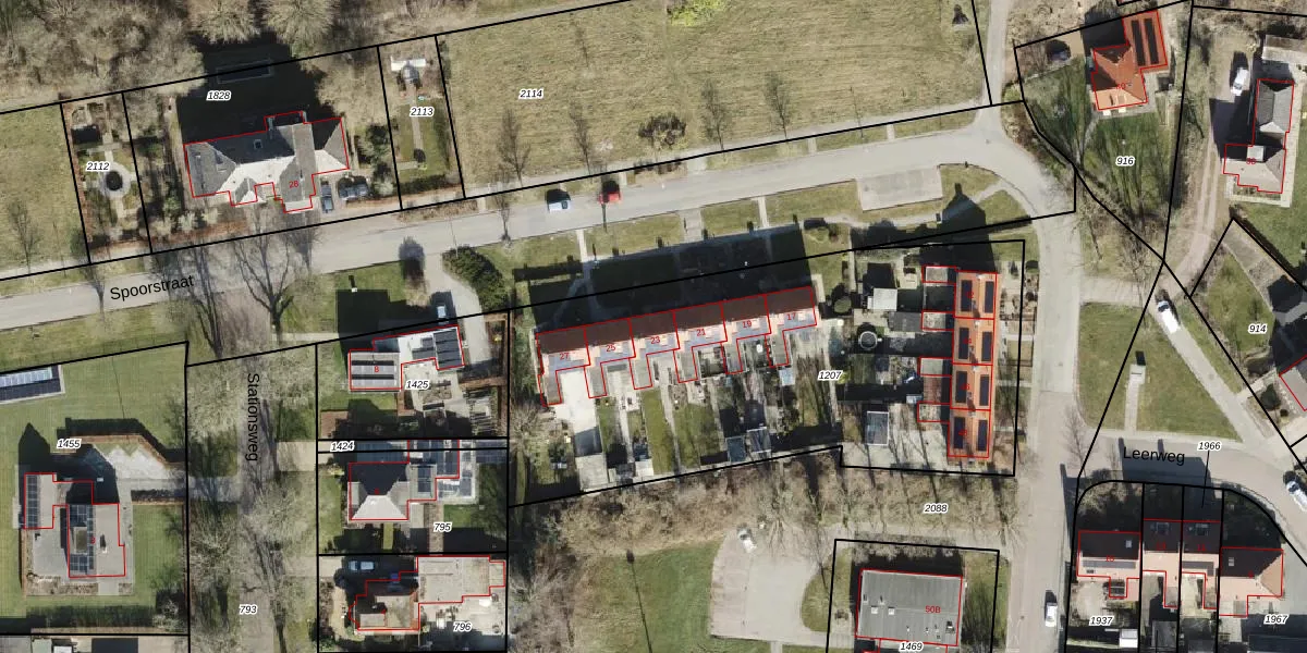 Het perceel waarop Spoorstraat 23 staat heeft een oppervlakte van 2454 m². Dit is een zeer groot perceel. De perceeloppervlakte wordt geregistreerd door het Kadaster. Gedetailleerde informatie over de maten van dit perceel kunt u vinden in het rapport Kadastrale kaart met maatvoering van Spoorstraat 23.