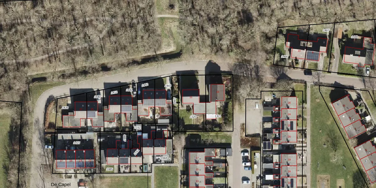 Gebruik de zoekbalk of klik op een perceel voor informatie over de adressen binnen dit perceel.