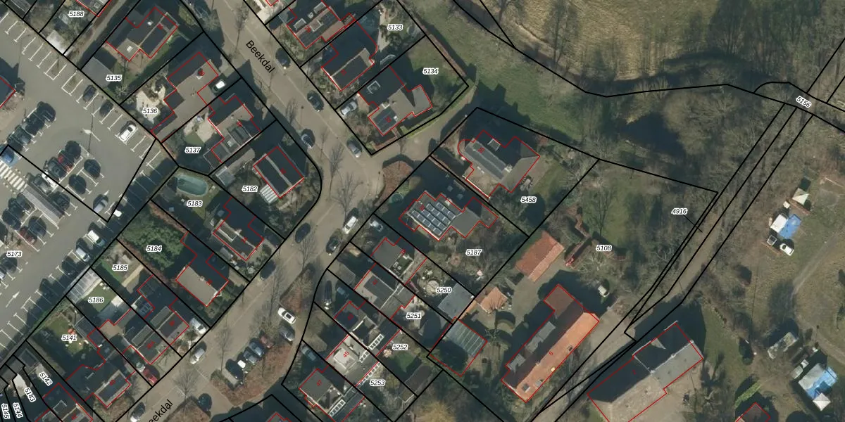 Het perceel waarop Beekdal 37 staat heeft een oppervlakte van 587 m². Dit is een groot perceel. De perceeloppervlakte wordt geregistreerd door het Kadaster. Gedetailleerde informatie over de maten van dit perceel kunt u vinden in het rapport Kadastrale kaart met maatvoering van Beekdal 37.