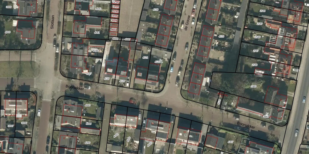 Boonakker 4 is gelegen op kadastraal perceel GNK01D4122. Deze kadastrale aanduiding is uniek en wordt gebruikt door het Kadaster om eigendomsrechten en andere zakelijke rechten vast te leggen. Het perceel maakt onderdeel uit van de kadastrale gemeente Nieuw-Ginneken.