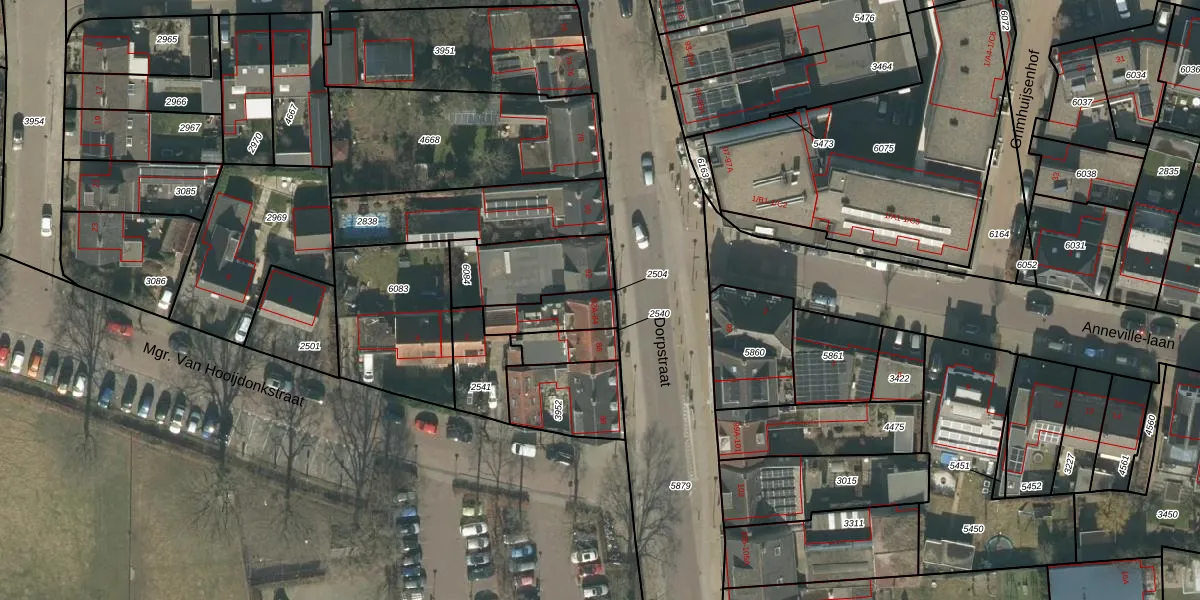 Dorpstraat 82-A is gelegen op kadastraal perceel GNK01D2504. Deze kadastrale aanduiding is uniek en wordt gebruikt door het Kadaster om eigendomsrechten en andere zakelijke rechten vast te leggen. Het perceel maakt onderdeel uit van de kadastrale gemeente Nieuw-Ginneken.