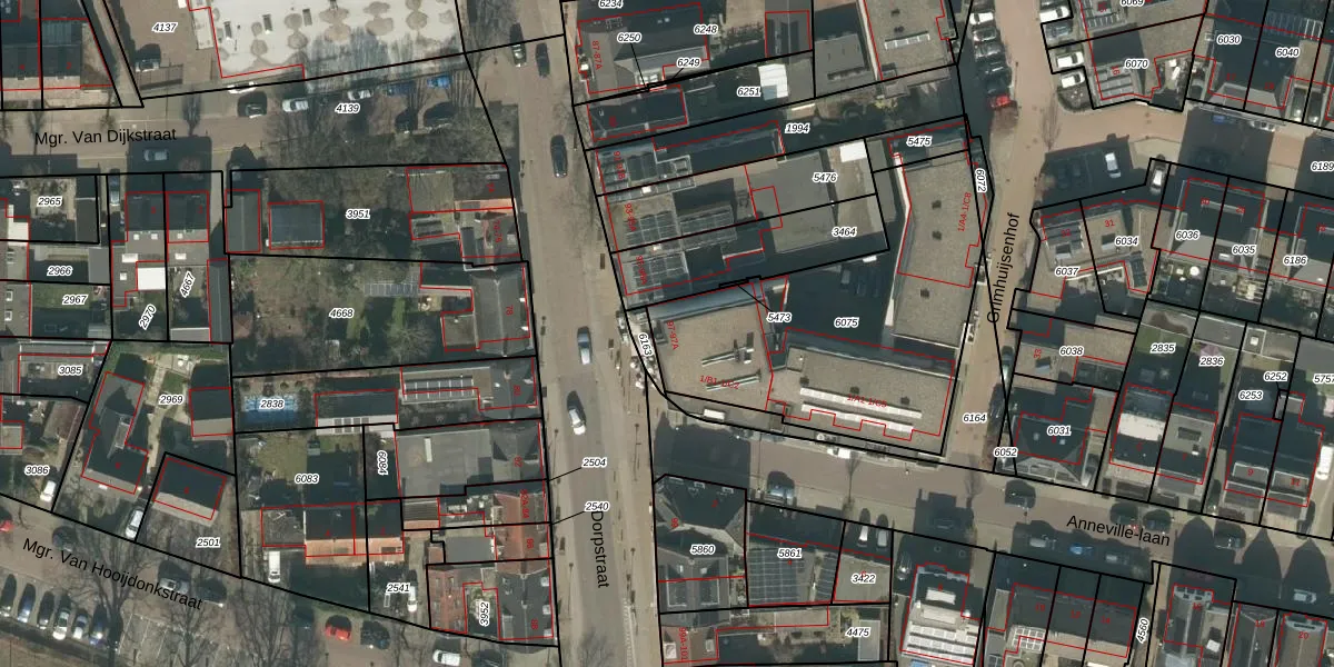 Dorpstraat 97 is gelegen op kadastraal perceel GNK01D6075. Deze kadastrale aanduiding is uniek en wordt gebruikt door het Kadaster om eigendomsrechten en andere zakelijke rechten vast te leggen. Het perceel maakt onderdeel uit van de kadastrale gemeente Nieuw-Ginneken.