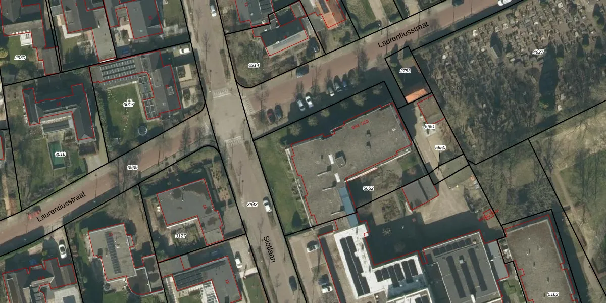 Het perceel waarop Laurentiusstraat 5-B3 staat heeft een oppervlakte van 1706 m². Dit is een zeer groot perceel. De perceeloppervlakte wordt geregistreerd door het Kadaster. Gedetailleerde informatie over de maten van dit perceel kunt u vinden in het rapport Kadastrale kaart met maatvoering van Laurentiusstraat 5-B3.