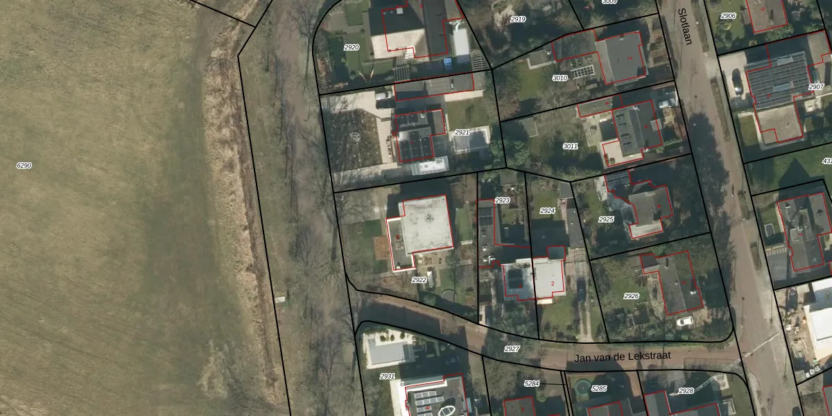 Gebruik de zoekbalk of klik op een perceel voor informatie over de adressen binnen dit perceel.