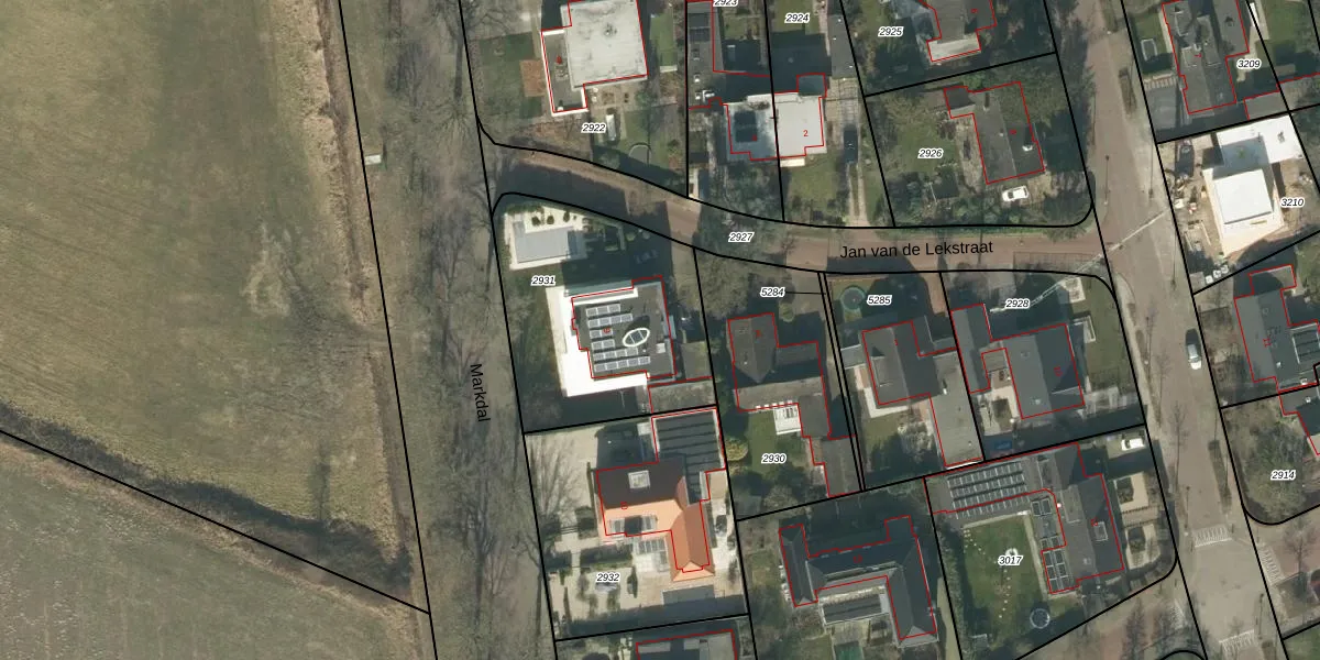 Het perceel waarop Markdal 9 staat heeft een oppervlakte van 930 m². Dit is een groot perceel. De perceeloppervlakte wordt geregistreerd door het Kadaster. Gedetailleerde informatie over de maten van dit perceel kunt u vinden in het rapport Kadastrale kaart met maatvoering van Markdal 9.