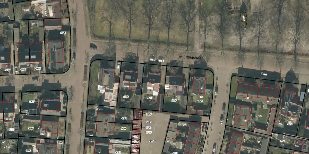 Mouterijstraat 9 is gelegen op kadastraal perceel GNK01D4047. Deze kadastrale aanduiding is uniek en wordt gebruikt door het Kadaster om eigendomsrechten en andere zakelijke rechten vast te leggen. Het perceel maakt onderdeel uit van de kadastrale gemeente Nieuw-Ginneken.